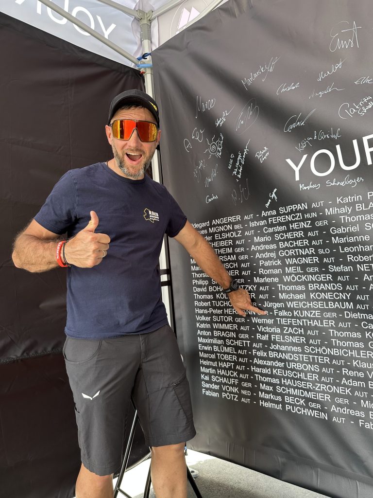 Donnerstag, 15:12 Uhr: Mein Start war gesetzt. Kurz davor holte mich Pierre Bischoff nach vorne. Wir führten ein witziges Pre-Start-Interview, das mich sofort in Rennstimmung versetzte. Lustigerweise standen Pierre und ich vor einigen Jahren schon einmal gemeinsam im Startblock bei der Salzkammergut Trophy – ein Detail, das er natürlich direkt aufgriff.