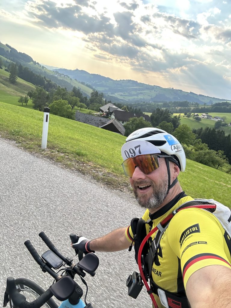 Zunächst ging es flach an der Donau entlang, ehe die ersten Steigungen warteten. Die Anstiege waren nicht allzu lang, dafür steil und herausfordernd. Doch jeder Gipfel wurde mit fantastischen Ausblicken belohnt. Der Donnerstagnachmittag verging wie im Flug. Immer wieder wechselte ich Positionen mit anderen Fahrern – eine willkommene Abwechslung im sonst monotonen Rhythmus aus treten, trinken, essen und wiederholen.