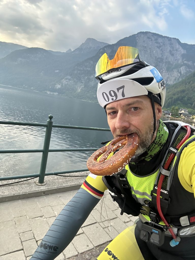 Der Morgen begrüßte mich am Hallstätter See – ein traumhafter Moment. Die Gegend um Bad Goisern kenne ich gut von der Salzkammergut Trophy. In Hallstatt legte ich einen kurzen Stopp beim Bäcker ein und gönnte mir zwei Butterbrezn – meine persönliche Belohnung für die überstandene Nacht.