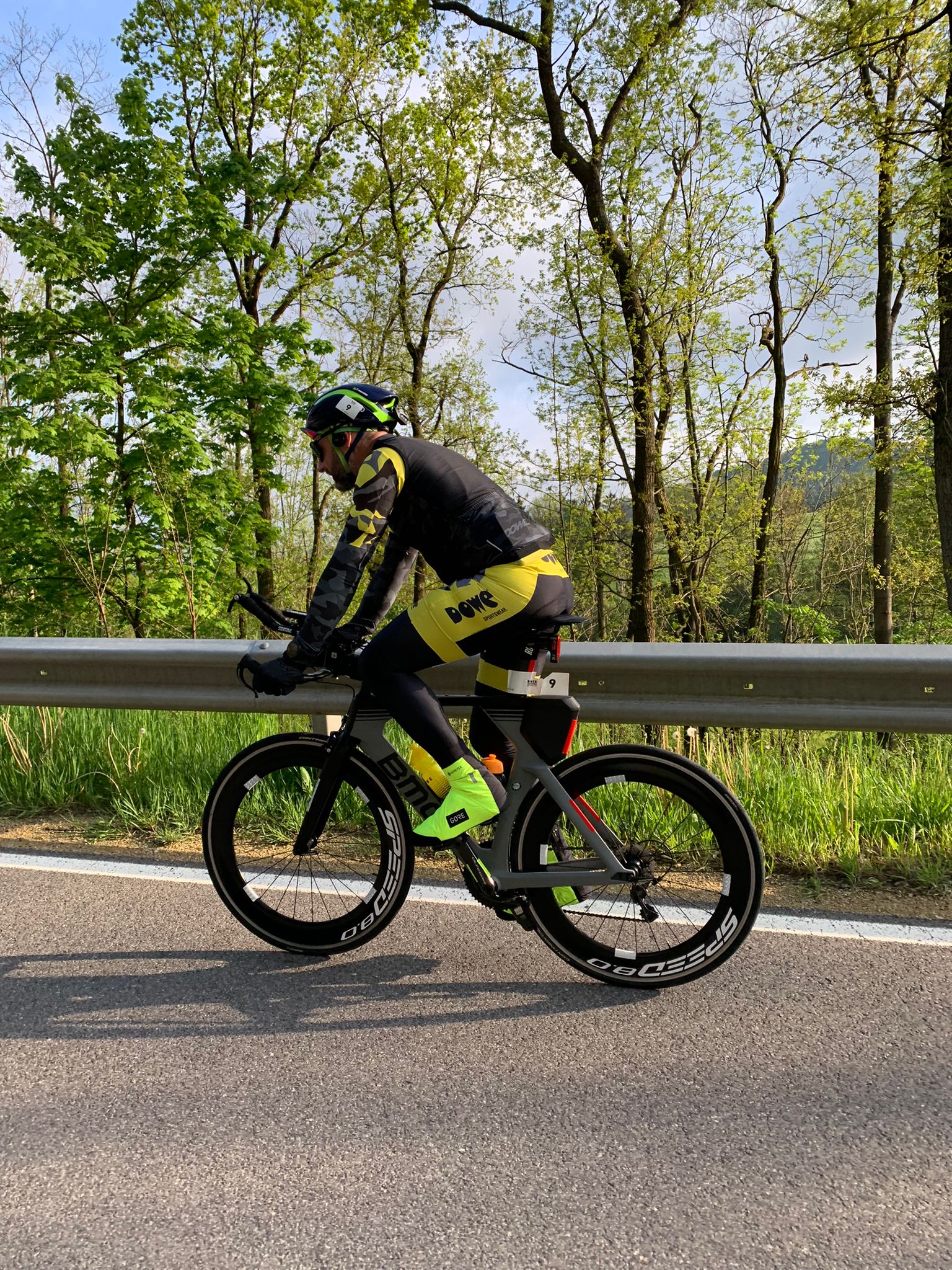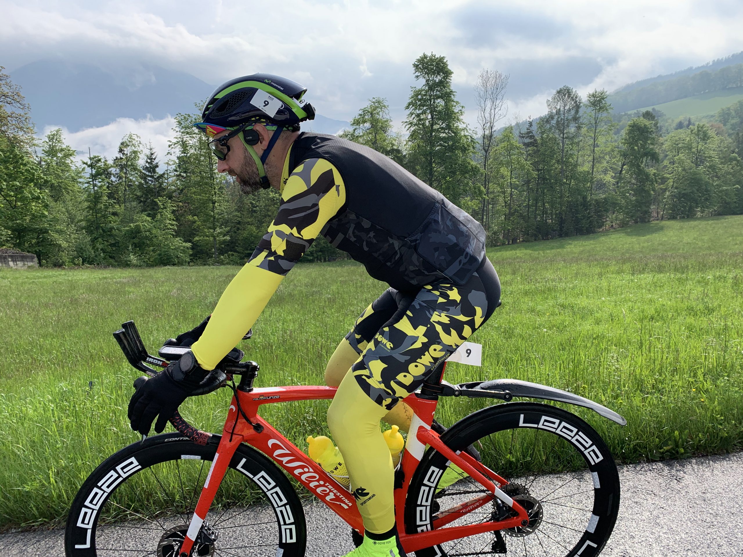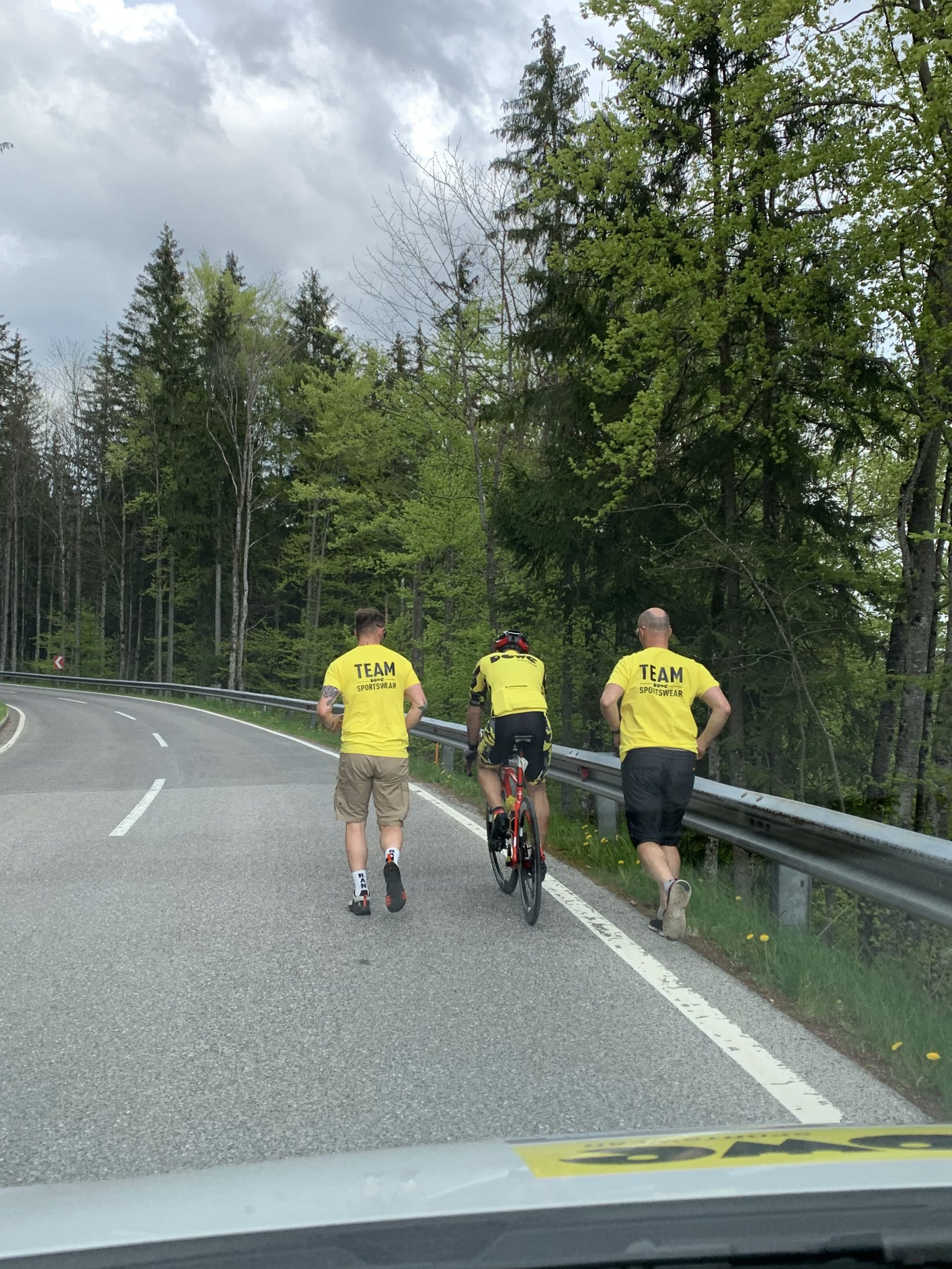 Die Vorbereitung begann im Winter. Als kompletter Neuling fragt man sich schnell: Was brauche ich alles? Wer begleitet mich? Gibt es Leute, die mich bei so einer Tortur unterstützen? Zum Glück: Ja. Jenny (meine Frau), Yvonne (ihre beste Freundin), Pierre und Stefan sagten sofort zu. Keiner von uns wusste genau, was kommt — nur die Eckdaten: 600 km, 6000 Höhenmeter innerhalb des Zeitlimits. Also testeten wir über den Winter alles Mögliche: Trinknahrung, Bekleidung, Positionen auf Renn- und Zeitrad, bis hin zum Regalsystem für das Pacecar.